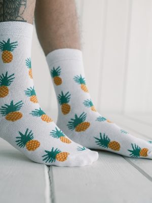 Ananas Desenli Beyaz Çorap