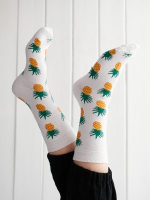 Ananas Desenli Beyaz Çorap