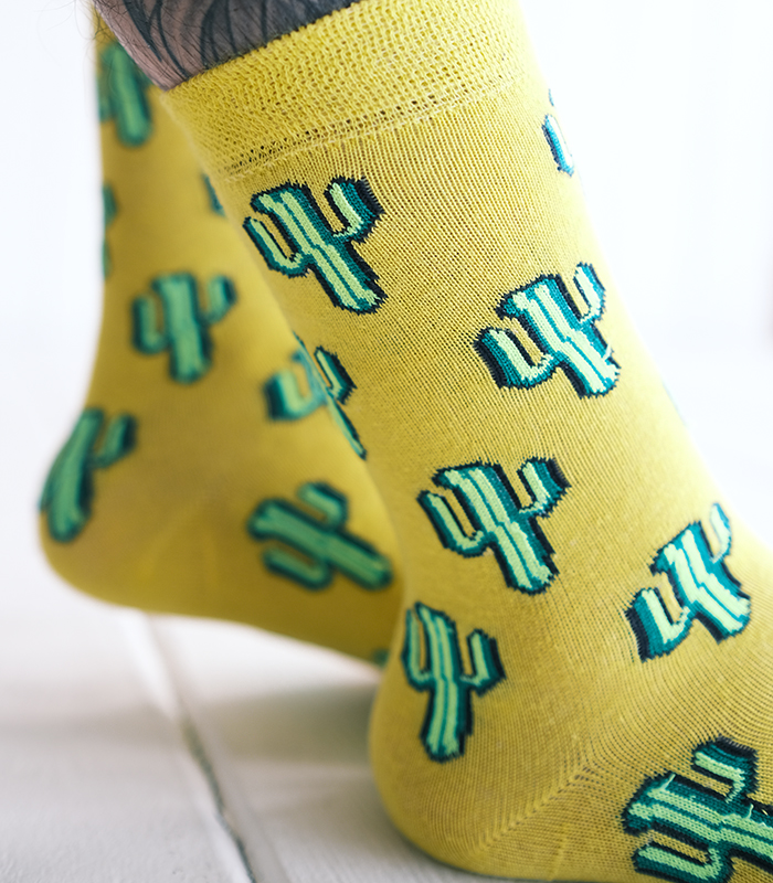 Kaktüs desenli sarı çorap modelimiz pamuktan üretilmiştir. Ürünlerimiz yerli üretimdir. Tek beden üretilmiştir. 36-44 numara arası rahatlıkla kullanabilir. Görünümü resimlerde görüldüğü gibi olacaktır. Pamuk oranı yüksek olduğu için ayağınızın şeklini alır, yumuşaktır, potluk yapmaz ve ayaklarınız rahat bir şekilde nefes alır.