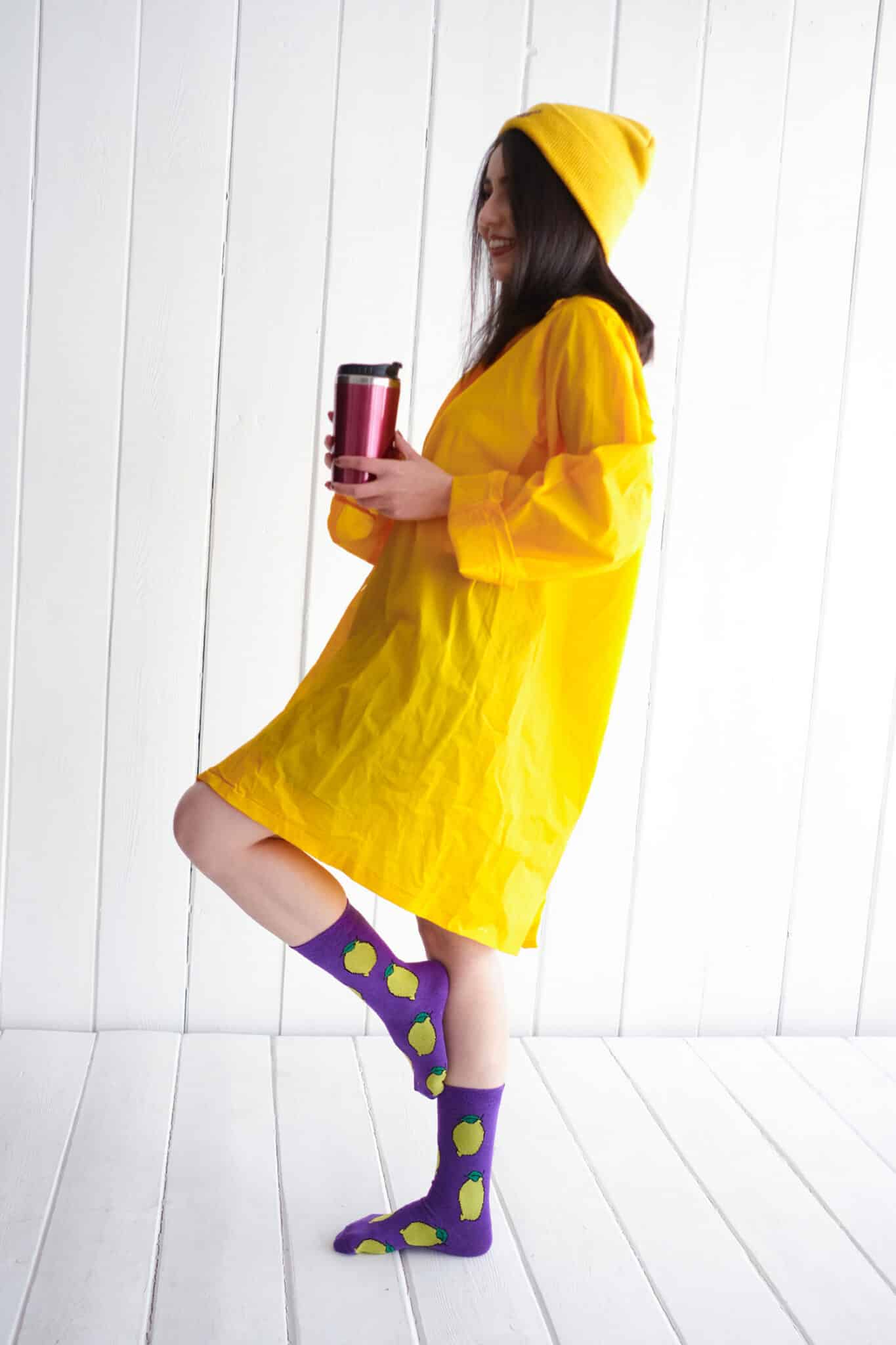 Limon Desenli Mor Renkli Çorap modelimiz pamuktan üretilmiştir. Ürünlerimiz yerli üretimdir. Tek beden üretilmiştir. 36-44 numara arası rahatlıkla kullanabilir. Görünümü resimlerde görüldüğü gibi olacaktır. Pamuk oranı yüksek olduğu için ayağınızın şeklini alır, yumuşaktır, potluk yapmaz ve ayaklarınız rahat bir şekilde nefes alır.